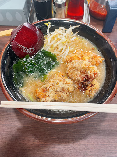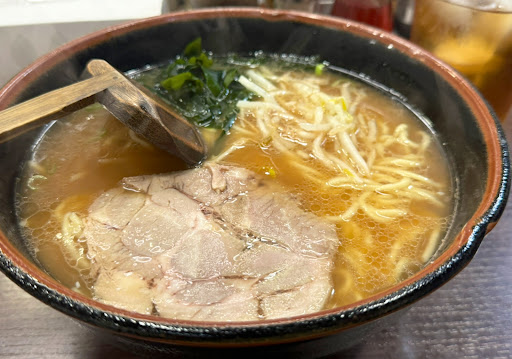 コロナ禍前はよく飲んだ後のシメに最高で利用させてもらってました。 スタンダードなメニューのスープベースは豚骨醤油でしょうか。 このスープの「さっテリ感(控えめなコッテリ感)」が個人的にはドストライクで評価⭐︎5の甘めになっていますが、豚骨醤油ベースが嫌いでなければなかなかだと思います。 いつも「中ラーメン」(ラーメンの1.5玉)を注文します。さりげなくニンニクが効いていますが、そこに更にニンニク投下が自分好みです。 (しかし、めっちゃ臭くなるので、次の日は引きこもれるように自分を自己管理できる人推奨。笑) とにかくスープが美味くて、食べ終わった後も「後一杯だけ…」と後を引きます。