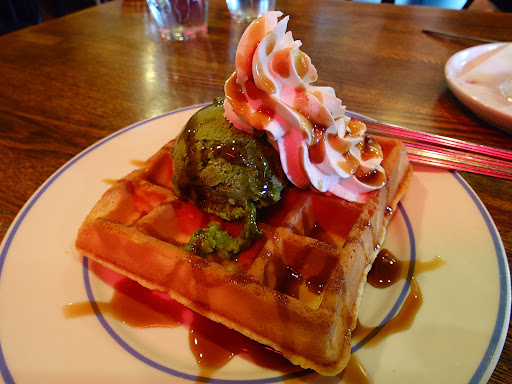 Read moreランチとスイーツ食べたくて訪問。店内はすこしレトロなよい雰囲気の内装。定番のランチメニューは安くて量もあり。日替わりランチは二種類ありました。ここは甘味処でもあり、パフェやケーキも食べられるのがヨシ! ホール係はほぼ1人で、昼時は少し待たされるけど、それは仕方ないかな。パフェが美味い〜。生クリームだけでは後で大変なんだけれど、ここはバニラとチョコのアイスが一つずつ中に入っていて、食べ応えあり! ワッフルも分厚...