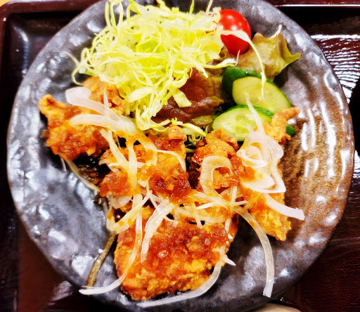 Read moreお食事処こまの郷へ行ってみました。 入口右側にある食事サンプルのショーケースや券売機左側に掲示されているメニューの写真を見て、券売機で食券を購入し、厨房のカウンターへ出します。引き換えに注文の料理が出来上がると音を出しながら赤く点滅して知らせるブザーを渡されるので、自分の席を決めてそこで待ちます。ブザーが鳴ったらセルフサービスで厨房のカウンターまで料理を取りに行きます。(券売機は現金のみに対応しています。) お水や箸やスプーンやナイフやフォーク、取り皿、紙ナプキンや各種調味料や台拭きは厨房カウンターの近くに置かれているので、セルフサービスで利用します。 今回は、期間限定新メニューのレモンペッパーチキンプレートを注文し、美味しく頂きました。 店内には、二人掛けテーブル席が6卓、四人掛けテーブル席が6卓、奥の畳敷き大広間に四人用テーブル席が11卓あります。(更に、テラス席として二人掛けテーブル席が2卓あります。) 内装については、壁はホワイト、天井や床やテーブルや椅子は木製のブラウンという配色です。 照明については、スポットライトと吊り下げ式ライトの併用で適度な明るさを保っています。 BGM...