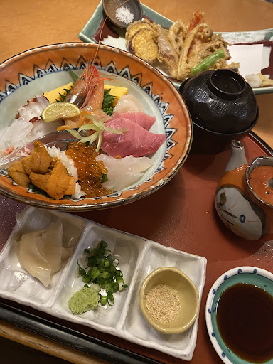 写真付きのメニューを参考にして注文。しゅうまいが美味しいので1980円位のお造り御膳を頼みました。そしたら前菜は写真と違う上に皿が半分のサイズ。しゅうまいは無く、2センチ角のチーズ豆腐のみ。聞いてみたら今日はそれです、とのしれっとした返事。それなら書いておいて。。 天ぷらがぬるくて、衣もあまり美味しくなくて、こここそ本領発揮して欲しかった…