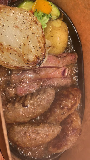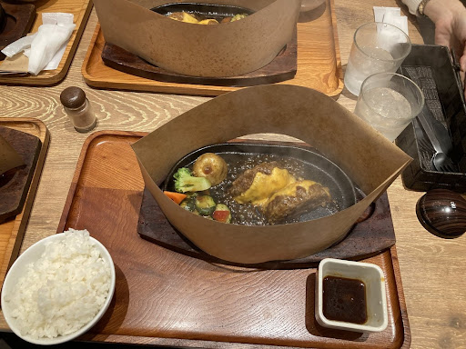 熱々の鉄板に店員さんがソースを掛けるパフォーマンスはまあ良い。 2人で同じメニューを注文して、鉄板の温度が違ってるから、片方は「あれっ?同じの頼んだよね?」ってなる。 しかもハンバーグを半分にカットしてソースを掛けるパフォーマンスは1人だけで、2人目は最初からカットされてた。これはどのテーブルも同じで、パフォーマンスは各グループの代表者だけと言うケチなもの。それなら、最初から「鉄板が熱くなっておりますので、ソースのハネにご注意くださいませ」と言って早く配膳してくれる方がマシだ。