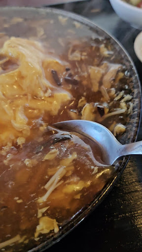 殆どの中華料理屋さんでは、付け合わせのスープと言えば、醤油ベースのネギが入ったものが出てくる事が普通だと思われますが、 こちらの華さんは、がらスープで出汁を取られていて、ニンジンと大根の細切りに、 玉子がとじられて、ここが最高のポイントなんですが、なんと隠し味に干しエビが入っているんです。 (オーナーさんに教えて頂きました!!) これが、なんともいえない、醤油スープとは全然ちがう、さっぱりとした味わいで、 天津飯の醤油ベースと味変を楽しめる化学変化が起こります。