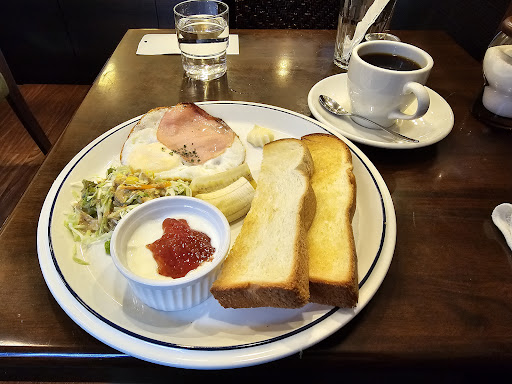 モーニングは数種類あり、BELLモーニングを選択。 トースト、ハムエッグ、サラダ、バナナ、ヨーグルトと品目が多くてなかなかお得感あり。 価格もそこまで高くないのでコスパも良いと思う。 コーヒーも美味しかった。