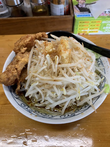 まず麺がうまい。 唐揚げの油と相乗効果を起こしてちょい甘い味がします。 二郎系の中でもかなり上位に入る。