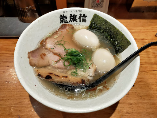 すぐ近所。これまたすぐ近所の最近オープンした焼肉屋さんに嫌われたので、久しぶりに妻とラーメンでもと龍旗信でのお昼となった。以前も思ったことだが、自販機がわかりにくい。イライラする。イライラしてみると、商品の金額が高いと一瞬思うのでイライラのマイナス効果を解消すべきだ。解消できる提案は、現金払いにすること。このまま、自販機であれば、店舗内をもっとチープなつくりにすべきであるが、改造に金は使えないので、現金払いでレジを置いて、後払いか先払いにすべきだ。従業員の負担・衛生面等を考えてのことだと思うが、店舗内装との調和がなされていないと思うのは私だけであろうか?