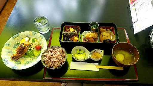 Read more少しづつ沢山の手料理+雑穀米。どのおかずも一見家庭料理っぽいけれど、かなり手前かかっています。例えば鶏天。衣が小麦粉だけでなく何かプラスされていて少し焦げて香ばしい。同じくなすやカボチャの素揚げもそれぞれに違う味付けが施されていたり。お漬物も多分自家製。すべての手作りにありがたやーって感じです!ただ、近くの人のタバコの煙で喉にかなりダメージが来ちゃいました(タバコアレルギーなので)。とは言え、喫煙を否定するわけではないので、分煙されていたらよかったのに、...