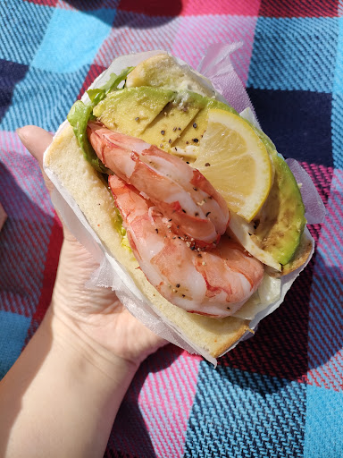 私たちは出汁たまごサンド、ヘレカツサンド、大エビとアボカドのサンドを購入しました🍤 エビが本当に大きくてぶりんぶりんだし、アボカドもとろっとろ…。 なによりこの出汁たまごサンドは出汁が本当においしい!出来たてだから袋の中が結露でびしょびしょになるのが難点😂