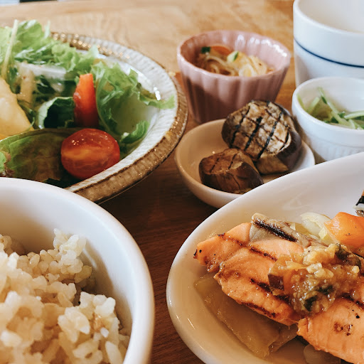 Read more■ G831 Natural Kitchen & Café (ジーハチサンイチナチュラルキッチンアンドカフェ) なかもず駅から歩いてすぐのところにあるお店𖤣𖤥𖠿𖤣𖤥 . 𖤣𖤥木製の建物が特徴で テラス席もあります𖤣𖤥 わんちゃん・ねこちゃんはテラス席ご利用可 ˎˊ˗ . ⚠︎テラス席は2席しかないので満席に注意です ༘* . . . 𓌉◯𓇋 ランチは11:45~ この日は予約なしでも入れました ✐☡ 事前予約がおススメだそうですよ 𓈒𓂂𓏸 . 12時過ぎに訪れましたが そこから人がひっきりなしに来て お店は忙しそうでした ༘* . . . ⋆⸜ ランチメニュー ⸝⋆ . ◎一汁七菜 野菜たっぷり畑のヘルシーランチ ▶デザートやドリンクのセットも付けれます 𓎯 . ・日替わりメイン サーモンのグリル山椒味噌 ・自家製フルーツ酢 ・畑のお惣菜6種 法蓮草と玉葱のフリッタータ ・彩り野菜のサラダ ~特製玉葱ドレッシング~ ・さつま芋の温製スープ ・玄米ごはん or 自家製パン . ⇧今回はこちらのランチを頂きました♪ˎˊ˗ . . ◎パスタと野菜のおかず農家のしっかりランチ ▶デザートやドリンクのセットにもできます𓎯 . ・日替わりメイン ・畑のおそうざい ・さつま芋の温製スープ ・彩り野菜のサラダ ・自家製天然酵母パン . . . お店のカウンターにはワインもありました⋆ ꙳ ✩ 12種類のラインナップがあるそうです ˎˊ˗ . . . こちらのお店では𓇟 お野菜にもこだわっていて . ◎泉州の野菜 ▶シェフが仕入れに ˎˊ˗ . ◎G831の自家菜園野菜 ▶堺に畑を借りて野菜作りを おこなっているそうです ˎˊ˗ . . . ⋆ ꙳...