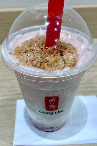 Read moreゴンチャは、こちらのイオンにはたまに買いに来ます。いつも何も支障なく買えてたんですが、先日行った時、タピオカを注文し、受け取る際に混ぜられました。数回逆さまにして混ざって渡されたんで、びっくりしました。いつも少しずつ混ぜながら飲むのでショックでした。 自分は混ぜられたくないけど、中には混ぜる手間がはぶけたと喜ぶ人も居るかも知れないし、 中身に異常があるわけでもなく、何も言えず、がっかりしながら飲みました。何年もタピオカ買ってて他の店舗や他店含めても混ぜられたのは初めてだったので、それからは他の店舗に行く事にしています。その女性の人じゃなかったら混ぜられなかったのか、でも注意されてないとこ見たら、それが正しいのか… いまだにわからないです。 場所はイオンの中なので、買いやすいです。 混ぜられない紅茶...