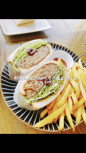 🔸ハンバーグサンド 980円 フライドポテト、スープ付き ⇨このハンバーグめちゃくちゃ美味しい! デミグラスソースハンバーグは1,500円ですが、サンドでも満足感高いです!😋 お肉もぎっしりで食べ応えもありました!
