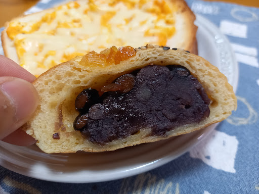 ・プリオッシュ生地の黒大豆&あんぱん 餡がずっしり詰まっていて、食べ応えあり。 豆も原形を残していて、濃厚な甘さを楽しめます。 薄皮の上にオレンジの皮を煮付けしたと思われるものがあり、甘酸っぱさもアクセントとなりました。 毎日、食べたいです。