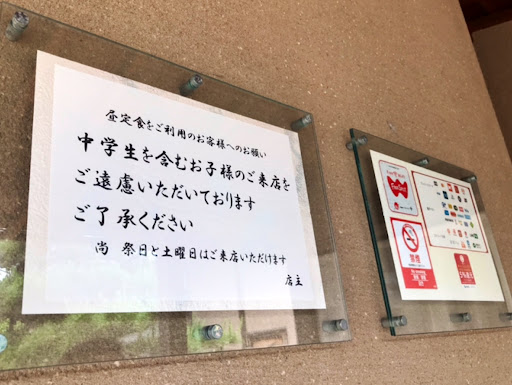 画像にもあるように、中学生以下のお子様の来店は日を限定し、静かにお食事を楽めるところのようです。(写真の撮影時、シャッター音は消しました。)