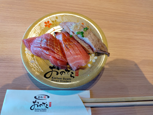 開店当初混雑やオペレーション不足もあるだろうから3ヶ月程度時間を空けて来店。 結果は微妙ながらも及第点。元々お店の位置付けが若手の練習の場と言うのがおのでらさんの回転鮨の位置付けだけに、シャリの握りの固さやテンポなど残念な点は否めない。 特に残念だったのは巻物。巻きは下手だし、海苔は破れているし。締めに楽しみにしている客も多いだけに誤魔化しの効かない技術だからこそ大切にして欲しい。 一方で鮨のネタに関してはリーズナブルに感じる程度に良かった。マグロは良いです。 お店はキレイで客層も良く、気持ち良く食事が出来ました。店員は辿々しさは残れど、害するレベルでは無く悪くはない。 1点難をあげるなら板前の愛想の無さかなと。完全に仕事モードになっていて、目の前の客を注視出来ていない。何の為に誰が為に鮨を握るのか。そこまで考えられて始めて一流なのかも知れない。