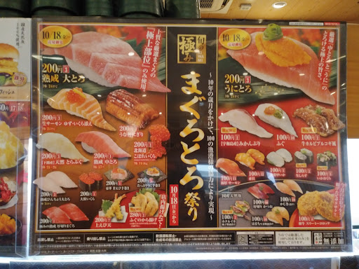 Read more11時30分、お昼の早めに来場 一人だったので予約なしでも即カウンター席に案内され、すぐ食べれました。 久しぶりだったのですが、受付用のタッチパネル画面で番号付きチケット発行→番号が呼ばれると、座席案内用のタッチパネルでチケット読み込み→座席番号が表示され、カーナビみたいに矢印で歩く方向を指示され、通路にある画面にも表示され、指示通りに歩くと席に到着。完全に無人で案内されました。 良く出来てるなあ、と思います。 ちなみに会計も案内時のチケットを読ませてスーパーの支払機みたいなので支払います。 注文もタッチパネルですし、店員と話すのは席を立つ時に会計する皿数を数えるときのみです。 徹底したコストダウンのおかげかネタはいい感じです。ヒラマサの握り200円皿で食べられるのが驚きで...