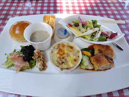 Read more結婚式場?の入口に屋台みたいな受付あり、食べ終わったら、そこで精算する仕組み。食べる場所はすべて、屋外で、ビニールハウスのような中にテーブル複数あり。屋外で食べるというのが気分いいですね。店員を手で振るベルを鳴らして呼ぶ。1200円と、1600円のランチ。メニューにドリンクの記載がない。ランチ内容からして、ドリンクはほしいとこだが、付いてるのか、オプションで付くのか、どこにも記載なし。一番高い1600円だが、味は一品一品が、そつのない普通味。ビュッフェで置いてある味ですね。コスパは良くないかな。1200円の方は、コスパは良いかも。ドリンクは有料セットでもいいから、メニューに記載してほしいですね。聞けばあるとは思いますが。ゴボウスープは、クセがあるので、人によっ...