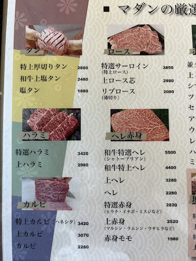 画像の写真を見ての通り、えげつない強気の価格設定。それほど肉に自信があるのだろうと思い、特選をそれぞれ注文した。そして出てきた肉は全て冷凍肉。唖然としました。シャリシャリのままで解凍すらほぼしておらず、焼くとシワシワに縮み、硬いオージービーフのような食感で脂の甘さもゼロ。