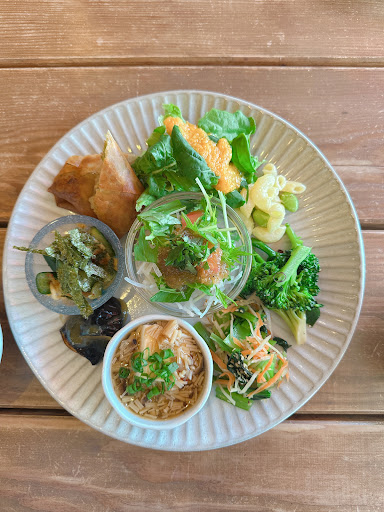 日替わりのランチプレートは福井産の野菜がたっぷりで栄養満点 春巻きがパリッパリでめっちゃ美味しい。 セットのデザートは焼きたてのスコーンとカスタード焼きプリン! 香ばしさととろける甘さが、優しいランチ後にぴ...