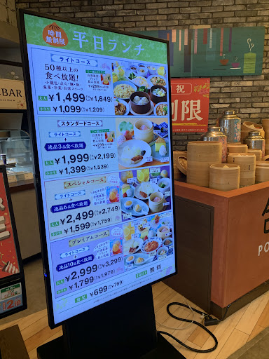 Read moreイオンモール北花田の4階レストラン街の一番端に位置します。 小籠包食べ放題です!他に、ラーメン、天津、チャーハン、麻婆豆腐、からあげ、オーダーのラーメン、ルーロー飯、デザート50種類食べ放題!夢のようです。 全てのコースでオーダー出来る小籠包は、自分の携帯でオーダーの必要があるので携帯の充電をしっかりしておいて下さい。コースのオーダー後、QRコードを持って来てくれます。そしてテーブルに熱々が運ばれてきます。時間がかかるので、すぐにオーダーして下さい。