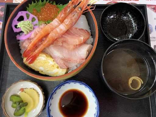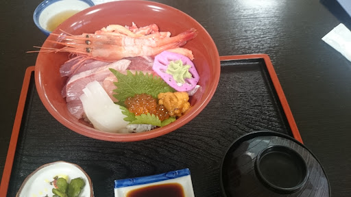 刺身定食は不味くはなかったけど、越前の道の駅で食べた刺身定食(ご飯、味噌汁、刺身4種、フライ、マカロニの和え物の小鉢で1500円ぐらいでした。お好みでご飯セットプラス刺身やタコのからあげなのどの一品おかずだと900円前後)の方が安かったし、もっと豪華だったので(そこでもささえのつぼ焼き作ってもらったけど、そこの方が200円安くジャリジャリはしてなかった)1700の価値あるかな?って感じなので、あまり高評価つけれないですね。