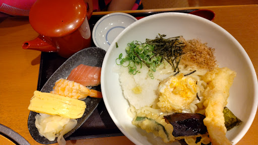 天ぷら盛り合わせは完全に常温でした。揚げたてを食べたかったのですがこれも残念でした。鱧そうめんは特に代わり映えなく見た目通りの味わいです。トッピングにナスの天ぷらがあったので期待しておりましたが、私の好きなナスの天ぷらではありませんでした。私は天ぷらでナスが一番好きなのですが完全に熱が通ってとろとろ系が大好きです。和食さと...