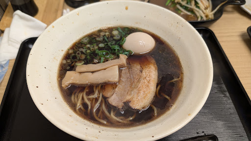 さて今日も深井ブラック目当てに19時訪店。 しっかり覚えてくださりありがとうございます。 今日のスープは気持ち薄めに感じたのと、サービスの味玉が少し酸味が…前回には感じなかったところが以上2点です。 完飲したくなるほどスープはうまいけど、色が示すインパクトも同時に求めていて、今日は歯と歯の間に隙間ができたような感覚でした。 次回もローテーションせずに深井...