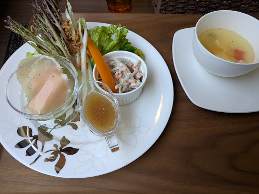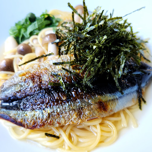 Read more昨年11月に訪問しました。たまたま車で通りがかりに、こんなところにお洒落なカフェが!と発見、後日ランチに行きました。パスタランチを注文、秋刀魚のペペロンチーノ(正確な名前は忘れた)を選択しました。秋刀魚をほぐしてあえたパスタを想像していましたが、小振りだけど一匹「開き」で出てきてインパクト強め。お味は普通に美味しいペペロンチーノ。スープとちゃんとボリュームのあるサラダが付いて、ランチとしては十分な量をいただけました。セットで注文できる(?)ケーキが品切れだったのが残念。単品だったら注文できたのかな?お店自体はこじんまりしていますが、決して窮屈な感じではなく、...