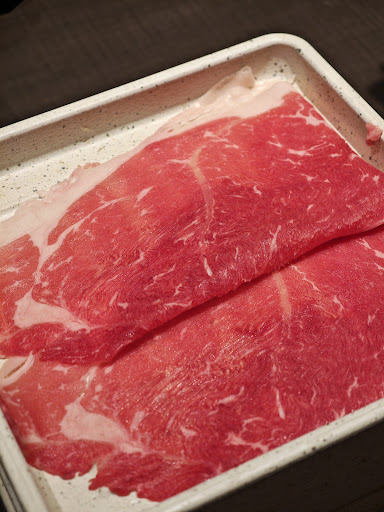 黒毛牛(和牛では無い?交雑種)しゃぶしゃぶを5皿注文、5皿届いたのですが、最後の皿はからっぽ笑、間違いでしょうが食べ放題だから笑って過ごせます。