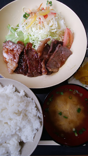 6.14 追記 金曜日の13時20分すぎ、ランチタイムが終わるギリギリで入店しました。時間が遅かったので、駐車場も店内も結構空いていました。この店でランチを頂くのは初めてなので、当たり障りのない焼肉定食をライス大で頂いてみました。初めにご飯とみそ汁と漬け物が運ばれました。その後で大きな皿に乗った焼肉と野菜サラダが運ばれました。千切りキャベツが柔らかくて美味しかったです。焼肉は、バラ肉のようでしたが、良い牛なので大きく切られていてもとても柔らかくて、一口で食べたり、二口で食べたりしました。でも、一口で食べたときの方がより美味しく感じました。ご飯もとても美味しかったです。今度は家...