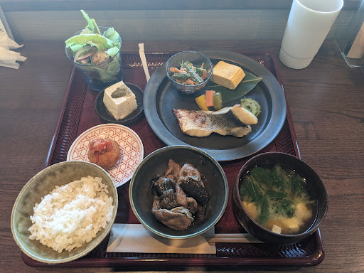 Read moreランチについてです。味はごくごく普通の家庭料理という感じです。それで1800円というのはさすがに高いと感じられました。水と同じ感じで柿茶を自由に飲めるのですが、食後のデザートについてくるのもまた粉タイプの柿茶というのが残念でした。せめて食後の飲み物はコーヒーなど、柿茶ではない...