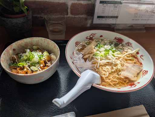 Absolutely delicious. Got the beef bone broth / soy sauce flavor with the fried chicken combo set. Wow. Soup was light, delicate, wonderfully balanced. The taste of broth stayed with me with every bite, and even with the thin soup the noodles carried the flavor very well (and were cooked perfectly). First time trying Tottori Gyukotsu style ramen and it has me wondering why it isn’t more popular all over the country. Wish we had a shop like this where I live....