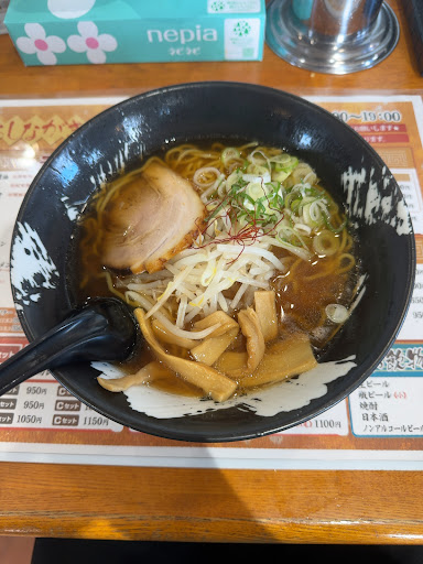 Read more近くで仕事があったので、興味本位で立ち寄り。 パチ屋と併設のお店(出入口は外)で、パチ屋の駐車場に入り難い(気持ち的に)以外は、停める場所に困る事もなさそう。 ピーク時を過ぎていたので店内はまばら。 カウンターとテーブル席がいくつかあるだけの比較的狭い店内。 カウンターは1人分ずつ間隔を空けて全て埋まっていたので、挟まれたくなかっためガラ空きだったテーブル席に座ろうとしたら「1人ならカウンターに」と注意された。 自分にラーメンが届く頃には店内は自分1人になっていたんだが…柔軟な対応がないのはパチラー相手な商売だからかな?