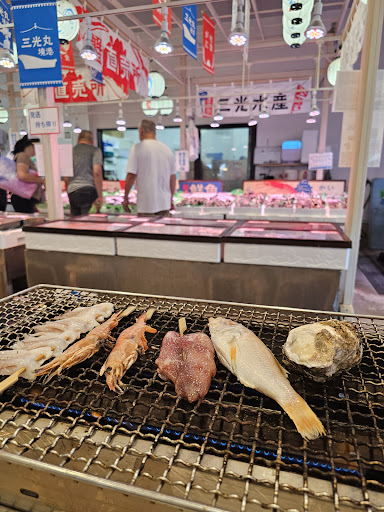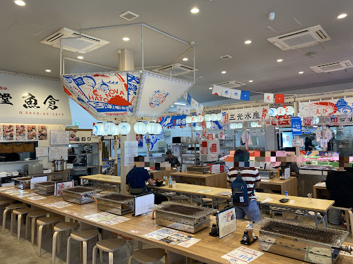 Read more3つの店舗が(浜焼きのできる魚屋、定食スタイルの店、回転寿司)入った複合施設で、フードコートのように各店舗で買ったものを持ち寄って食べることができるスタイルです。水、箸、皿、お盆などはセルフサービス。