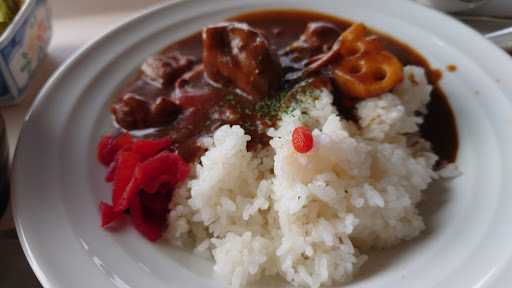 Read more空港に出かけた折にランチ利用しました。 12時の時点でフードメニューの半分が売り切れ。 入店時にオーダーと支払いをします。支払いは現金とPayPayのみ。 大山どりの薬膳カレー880円と砂焼きコーヒー440円をオーダー。 番号札を渡されて、番号が呼ばれたら取りに行く、セルフ方式です。 外が見える窓際のカウンター席に座りましたが、ふと見ると同じカウンター席でも外が見えない席にはコンセントが設置されています。そちらに移ったところ、目の前に降ろされたブラインドに血のような染みが(_