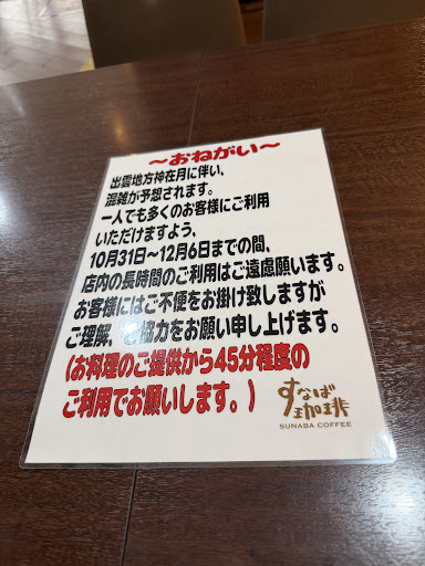 「長時間て具体的にどれくらいですか?」と聞くと「席に書いてある紙を置いてあります、裏もしっかりお読みください」と言われました。