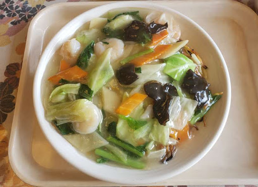 Read more中華料理を食べたかったので、検索したところ上位にヒットしたこちらに初訪問! 勤労者福祉会館の1階で、幟が立ち目立ってます。当初は五目焼きそばを食べたかったのだが、空腹感に負け五目中華ラーメン¥800を注文する。イメージ通りのモノが出されたので満足。餡掛けで筍も入って具沢山でgood👍 ただレストランなんで、カジュアルな服装だと浮いた感じで落ち着かないですね💦 あと駐車場から厨房とダストボックスが丸...