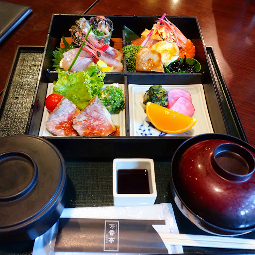 Read more3連休初日の昼前に行きました。他に客はいませんでした。お造りと揚げ物などの松花堂弁当ぽいものや、それを豪勢にしたものや簡素にしたものがありますが、前夜と今夜の旅館の晩飯とかぶりそうなので、敢えて豚肉の粕漬けを注文しました。税抜きで1750円なのでスペシャルな豚肉かと思ったら私の舌ではわかりませんでした。豚に申し訳ない。ロースだと思いますが脂身が少ない、薄くて火がよく通っていて硬いなどが特徴です。写真の他には...