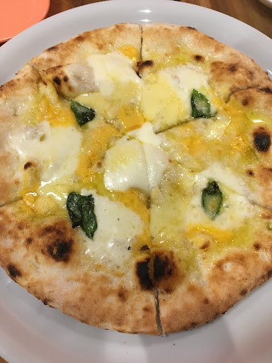焼きたてのピッツァは小麦の香りが芳しく、生地も薄目に仕上げてあるのでパリッとした食感が楽しめます。もちろん、耳の部分に残るもちっとした生地もまた美味しくいただけます。