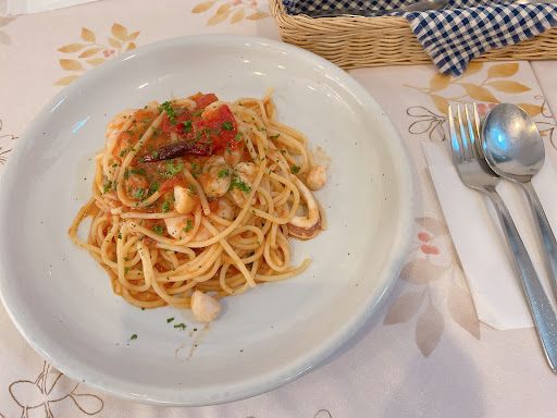 ○海の幸のトマトソース ¥880 母の注文。エビ・アサリ・イカが入っており、ゴロッとしたトマトのソースをたっぷりのオリーブオイルがオイリーかつ滑らかにしてくれていて良い相性でした。