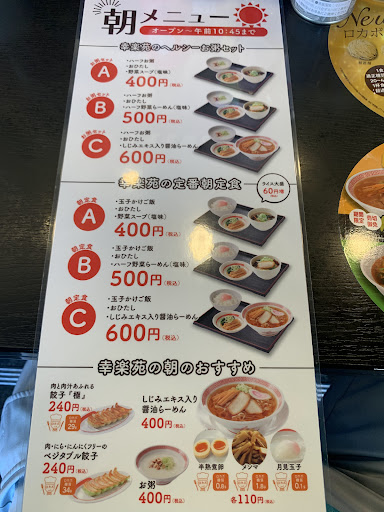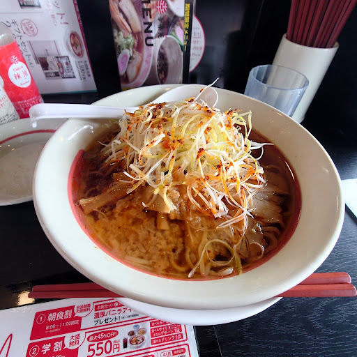 朝かゆ定食に付いてくるラーメン、スープは基本塩だがこの600円コースはあさりだしの醤油と見た。うまいはうまいが、他のコースのスープと比べ、野菜感が足りない。朝から減量を考えたくも無いσ(゚∀゚...