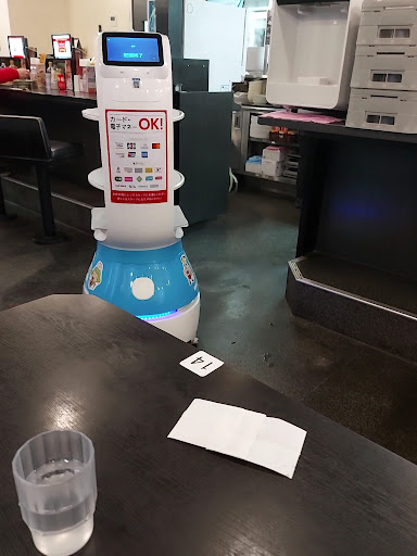 I dont speak Japanese so I took longer than usual to order but the staff were very helpfull. With a translation app on my phone I got what I wanted. The touch screen was easy to use, the robot was super cute and it was very well priced. I recommend coming here for simple easy food and drinks.