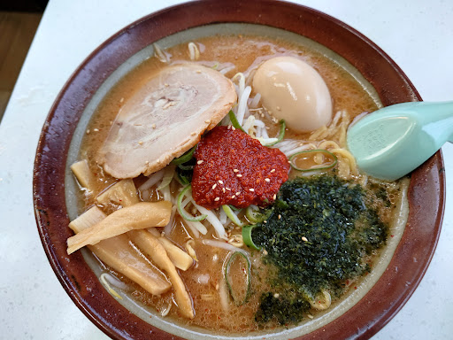 Read more味噌ラーメン推しのラーメン店。 丸味噌ラーメンと辛味噌ラーメンを頂きました。 丸味噌ラーメンは、器が来たときにもう旨そうな味噌の香りにやられました。 いわゆる味噌ラーメンはこれ!というやつですが、普通からは一歩出たやみつきになる味わいがある。 コーンを全部食べないと、と思っているうちにスープまで飲み干してしまいました。 辛味噌ラーメン逆は、あえて辛味噌と海苔は添えるだけで混ぜて出さないタイプ。なのでまずはそのままの味で食べてから、少しずつスープへ溶かして変わっていく味の変化を楽しめて良い。 辛味噌だけで無く海苔も良い香りを出してまた普通の辛味噌とは違う個性を出してる。 駐車場も比較的広め。 また別のメニュー食べたいで...