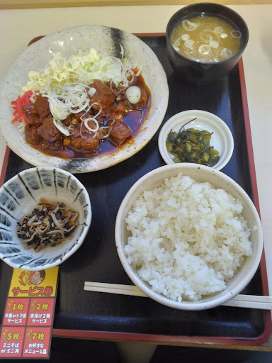 Read more佐久平PAの上・下線にそれぞれある食堂で、スタミナ定食が人気の食堂です。 今回は少々変わり種でもある麻婆牛すじ煮定食(¥990)を注文しました。 注文から約3分ほどで出来上がりました。 結論から言うとこれはハズレでした。 熱々感が全くなく、生ぬるい事がいちばんのマイナスです。 やはり牛すじは熱々でないと美味しくありません。 牛すじと麻婆との絡みも微妙でした。 やはりこちらのお店はスタミナ定食1択かもしれません。 こちらの食堂の定食類に小鉢が2つ付いてきますが、梅味のひじき・野沢菜こんぶ漬け・どちらも美味です。 野沢菜こんぶ漬けは売店の方で購入も可能で、自宅でも食...