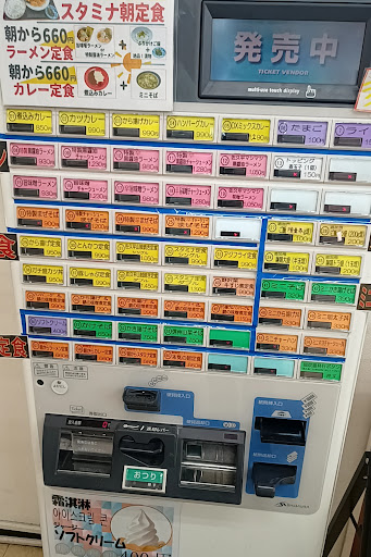 ※食券券売機2台あり(高額紙幣対応) ※給水器&コップと、一味・マヨネーズなどの調味料はカウンター横でセルフ