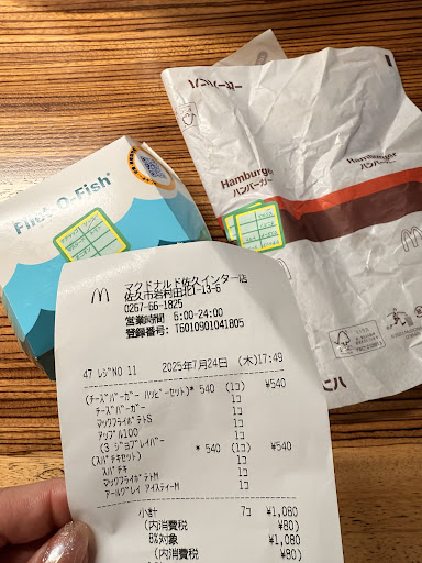I ordered cheese burger happy set and スパチキセット in drive thru but when we got home we got the normal hamburger happy set and Fillet O Fish with both no fries. I was surprise when my kid tell me that there was no fries and got different burger, but because he ate all of it I can't...