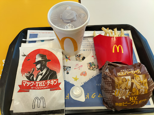 Read moreニューヨークビーフポテトセットを頂きました。ハンバーガーを喰むと冷たいベットリした異物感を感じました。何だろうと思って見てみるとポテトサラダ。パテやバンズは温かいのに残念な食感になってテンションダウン。 マックザ・チキンは胡椒辛い。胡椒は肉の味を最大限に引き出す為の香辛料なのに胡椒辛さで肉の味がしない。鶏肉や衣は柔らかくて食感も良いのにもったいない。酒の摘みには良いけどランチに食べる物じゃないと実感した。 ドリンクのストローは紙製だったがキャップはプラスチックのままだった。海洋生物の被害がニュースで騒がれて変更したのだろうけど片手落ちなので海洋生物の保護の実効性はほぼない。店内で食べる場合、ドリンクのキャップやストロー、シロップは必須じゃないので必要な客にだけ出すよ...