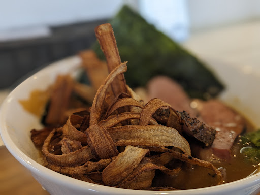 頂いたのは「大地鶏白湯」 焦がし醤油ラーメンです。 オーダー入ってから素揚げされるゴボウのアクセントと見た目のインパクトが印象的。 とっても美味しかったです。 色々頂いてみたいなと思いました。