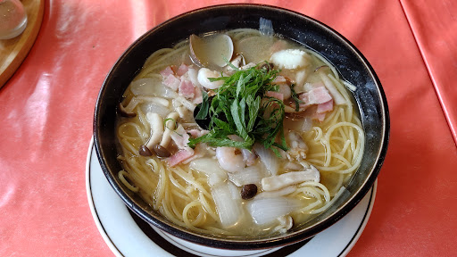 Read moreJR中込駅を出て左側に50m。二軒目のお店でペスカ店の前に5台駐車出来るスペースがあります。お店はテーブル席とカウンター席があり昔の喫茶店の趣きのある室内で雰囲気はとても良いです。イタリアンレストランですと、ピザかスパゲッティーの感じですが定食や牛ステーキどんぶり丼もあります。アンチョビ塩あじ、ホタテときのこ塩あじを注文。普通は単品なのにサラダ付きです。スパゲッティーは一人前100gなのに150gの量です、食べごたえはありアンチョビ塩あじの美味しい事に加えホタテ、きのこの塩加減も良くそして安いです。佐久で一番古いイタリアンレストランのお店...