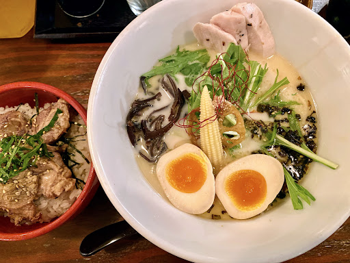 Read more店舗状態・・・星🌟2 まず、入口の扉が結露でびしょびしょ。ここの対策は必要。入る時に気になりました。 店舗内・・・星🌟3 ①入ってすぐに動物系の香りが。鳥ベースなので匂いは仕方ないとは思いますが、食事をする前の香りは極力しない方が良いでしょう。換気の方法を対策したら直ります。 ②カウンター席に座りましたが、机がペタペタと粘りがあり。せっかく拭いているのだから、対策した方が良いと思う。 接客態度・・・星🌟3.5 ラーメン屋としては上等な接客。お客に気を回せるホールスタッフさんは星🌟4。ただ、悲しいかな、店の作りが悪いので調理担当者がカウンター前面にいる為、作業中は目が行き届かない。ホールと調理の作業の分割をした方が良いかと。 店の雰囲気・・・星🌟4 良くも悪くも「ラーメン屋」という雰囲気。もう少し照明を明るく出来たら星🌟5です。暗いのはお酒を提供している店と間違えてると思う。 ラーメンの味・・・星🌟5以上 この付近のラーメン屋は豚骨系が多い中で鳥系はありがたい。鳥の味はしっかりしていますがしつこく無い。スープまで飲み干せる味には感動すら覚えた。 コンセプトとして女性でもリピートする…は、非常にマッチしてます。 価格・・・星🌟4 安くは無い。ただ、高くもない。1000円あればラーメンは堪能出来ます。 その他・・・星🌟3 調理担当者が否が応でも見えてしまいます。せめて帽子被るとか手ぬぐいを被るとかで、髪の毛入らないよってアピールすべき。