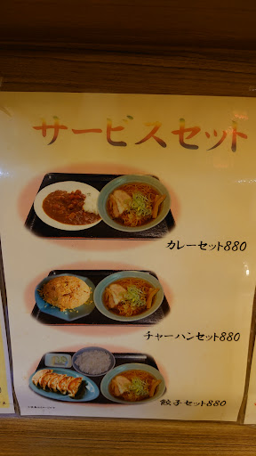 Read moreもやしソバ食べました、餡かけじゃなかったです。 カレーセット食べました。 駐車場あります。 生ビール550円瓶ビール500円日本酒400円 酎ハイ、ウーロンハイ380円焼酎水割り、ロック350円角ハイボール380円梅酒ハイボール480円コーラハイボール480円 カレーライス600円中華丼650円エビチャーハン、キムチチャーハン、鮭チャーハン780円チャーハン600円 ラーメン、ワンタン490円餃子400円ワンタンメン600円ネギラーメン750円チャーシューメン700円ワンタンチャーシューメン770円ネギチャーシューメン980円味噌ラーメン600円辛味噌ラーメン700円味噌ネギラーメン700円味噌チャーシューメン800円ネギ味噌チャーシューメン1020円レバニラ炒め650円ニラ炒め650円レバー野菜炒め600円肉野菜炒め650定食あります。 塩ラーメン490円タンメン600円五目メン700円チャンポン700円広東メン700もやしラーメン...