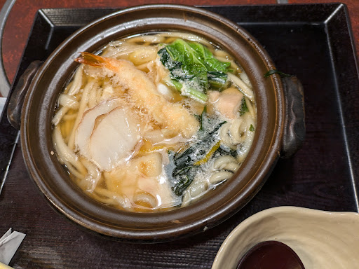 Read more昔千葉市にあった民芸がなくなって以来行けてなかったのですが、久々に食べたくなってGoogleマップで検索したらヒットした佐倉店。日曜の夜7時頃でしたが待ち時間なしで座れました。迷った末に鍋焼きうどんを注文、出てきた鍋が小ぶりで。あれ?小さいなーと思ったのですが、具の種類が多くて食べ応えがありました。麺は手延べうどんだそうで、端が平たくぴらぴらしてたりするのが楽しいです。スープは濃すぎず上品な味。デザートのあんみつはつぶあんがとてもおいしくて、コーヒーに合います。お茶は季節柄か冷たかったのですが、個人的にはあったかいお茶のほうがよかったかな。。ヒレカツも食べたかったけどなぜかごはん付しかなくて、ご飯はいらないので断念。単品も作ってほしいです。おつまみメニューなどもあってどれもおいしそう。値段は全体的に高めの設定で...